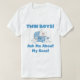 The proud new mum and dad of baby boy twins will love this cute design featuring two boy bunnies and blue text that reads "Twin Boys! Ask Me About My Sons!". Twin Boys T-shirts, cards, buttons, magnets, bags, mousepads, and more!
