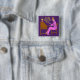 This personalised square button for writers has a vintage Art Deco stencil look. A woman in a pink dress sits at a writing desk with pen raised while a lamp shines next to her. The woman looks like she is from the 19th or early 20th century. The design has a modern stylised feel.