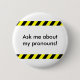 Are you tired of people assuming your gender and pronouns because of your physiology or presentation? Do you want people to ask, instead of assume, your pronouns? If you're okay with people actually asking, because they might just(!), then this button could be for you. [It's not your job to education cis people, after all, but it's also okay if you feel like that's something you care to do.]