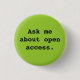 Ask me about open access. 3 cm round badge