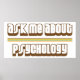Ask Me About Psychology. Get this fun design featuring your hobby, occupation, or obsession on great t-shirts, stickers & much more. They also make great gifts!