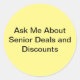 Ask me about senior deals and discounts. Great for sales agents to use to start a conversation with a potential customer