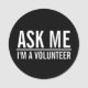 featuring title “Ask Me” and text “I’m volunteer.” in white bold sans serif font on black background.