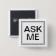 Simple budget ask me pin back buttons in classic black and white designed as a template you can customise online by simply replacing the text or leaving it as-is to suit your special event, seminar, convention, or charitable events.