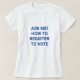Ask me how to register to vote voter registration campaign volunteer t-shirt.