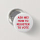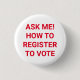 Ask me how to register to vote red and white 3 cm round badge