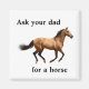We all agree: we want a horse. But how to get a horse? I'll tell you: your dad. Your dad can get us a horse. You should ask him. To remember: a magnet to help ask dad for a horse.