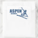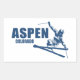 Aspen Colorado has one of the best and most famous ski resorts in the state, stunning mountain scenery, and endless recreation. This great design has a skier hucking a jump with bold text.
