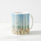 A winter mountain scene with aspens and high peaks dimly seen through the trees.