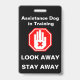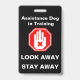 Assistance Dog in Training tag, with a stop/no touch hand, and "LOOK AWAY STAY AWAY"