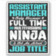 Funny quote: "Assistant Manager Only Because Full-Time Multitasking Ninja Is Not an Actual Job Title", Ideal for every experience Assistant Manager worker, for showcasing your dedication and love to your job. funny gifts for an awesome girlfriend, boyfriend, mom, dad and friend or anyone who loves and appreciates their work.