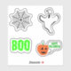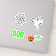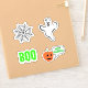 Decorate your space for Halloween with this assorted pack of stickers or magnets. Comes with spider web, spooky "BOO" text, ghost, and carved pumpkin saying "Happy Halloween".