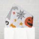 Spiders, pumpkin, bats in orange yellow and black.