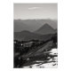 A black and white landscape photograph of rolling hills and mountains as far as the eye could see. Rows of trees here and there. And a few patches of snow still lingers in the early Summer time. Image Copyright ©2023 Kimberly J Tilley. www.zazzle.com/store/developingnature