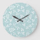 Assorted Leaves Pattern White on Duck Egg Blue Large Clock