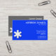 A clear stylish and attractive business card template with an attention grabbing bold shadowed 3d effect asterisk symbol in the lower left. Main company details on the front, with name and personal contact on the back, on a grey background. However the background colours can be changed.