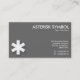 A clear stylish and attractive business card template with an attention grabbing bold shadowed 3d effect asterisk symbol in the lower left. Main company details on the front, with name and personal contact on the back, on a grey background. However the background colours can be changed.