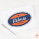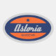 Oval signage design featuring the neighbourhoods of New York City. Official orange and blue colours of NYC. Astoria neighbourhood of Queens.