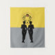 Modern art "Astra Feminine Colorblock" features two female form silhouettes with astral circle and laurel on trendy yellow & grey colorblock background
