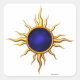 This New Age design features a beautiful sapphire jewel set in a golden sun.
