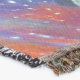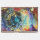 A quality printed throw has its advantages. This is a much finer weave throw than its loopier cousins, and though lighter, it is worth the investment for custom room accessorizing. The back is much prettier than the typical brown, and the fringe on the long sides very vivid, the selvage nicely done. Before photographing, I washed the throw in cold water, delicate, with a thicker woven throw the same size. On tumble dry low, this throw was dry in half the time as the other. This is a very practical quality if you use throws for furniture covers or to wrap up in frequently. The sleekness of the fabric makes it a great layer for accenting or protecting without the feeling of sitting on too much stuff. Perfect for napping or when you feel a light chill coming on. The color printing is beautiful and on this fabric, matched the design and color of my Photoshop image. This is an advantage for blending room fabrics and colors. The fringe on the short sides prints the colors from the design image and therefore varies from the side fringe. I streaked a white fractal line through the plaid pattern to give the illusion of weaving. This printed as crisp as an illusory thread, and put some white in the short side fringe, showing another advantage of print vs loomed- for artistic purposes, line lines, detail, and color integrity can be planned and preserved. My loomed throws have color limitations and more of a needlepoint texture. Print throws reproduce an exact image. The throw felt a little stiff straight out of the package, but this went away in the first delicate wash. Of course I searched the wash water for ink or bleeding and there was none.