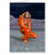 3D rendering of a male astronaut on an alien planet and blue night sky background