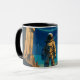 An astronaut standing between towering ancient pillars under a radiant moon suspended in a cosmic sky. The scene blends the mystery of forgotten civilizations with the boundless wonder of space exploration. The lone figure symbolizes humanity’s search for meaning across time and galaxies, standing at the threshold between the ruins of the past and the endless possibilities of the universe.