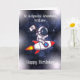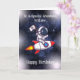 Outer space, astronaut riding a rocket birthday card, editable text and name.
