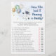 These adorable Guess Who Said It Mummy Or Daddy game cards are a fun Baby Shower activity. Simply pass them around during the Baby Shower where guests will have fun guessing who said each statement-Mummy or Daddy. The design features an astronaut with colourful planets with faux gold foil stars.