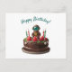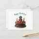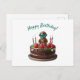 This postcard features an illustration of a chocolate strawberry birthday cake with an astronaut figure on top of it. This is a great card to celebrate the birthday of your grandchild who dreams about being an astronaut.