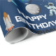 Astronaut in Space Galaxy Theme Birthday Name Wrapping Paper
