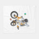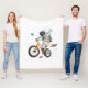 astronaut in spacesuit riding bmx bike on space ov fleece blanket