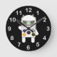 This adorable astronaut cat is ready for his flight into space on this clock. His space suit, complete with patches makes him super cute!