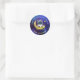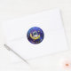 Astronaut Space Adventure Birthday Invite Sticker - Round stickers that feature an astronaut posing from a crescent moon, with stars around him. Set on a background of starry skies. Customisable Curved text above the astronaut says, "Join the space adventure". Customisable text below says, "Ethan's 6th Birthday".