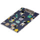 A graphic of astronaut clipart, Outer Space: astronaut holding balloon as a planet, a rocket, stars, UFO icon, Space satellite icon, Saturn planet, Spaceship, and others.