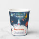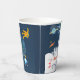 Astronaut space-themed party paper cups. Personalise the cups by adding the kids name. This adorable design features an astronaut, rocket ship and colourful planets. You can find more matching products at my store.