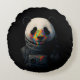 Astronaut Panda with Neon Paint Splash Round Cushion