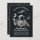 Celebrate your son's special day with these space-themed birthday party invitations! This design features a waving astronaut surrounded by stars and planets against a dark night sky. Personalise with your details in modern script typography. These cards reverse to a green colour. Edit the text in the template boxes and choose the right paper and printing options for you!