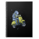 Astronaut riding scooter in space notebook