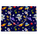 A vibrant space theme with astronaut, space aliens, asteroids and assorted space objects.