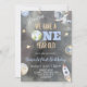 Space Invitation for First Birthday of your kid with planets, stars and astronaut.