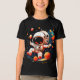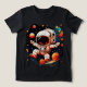 A graphic of an astronaut in outer Space. Saturn planet, Spaceship, and others.