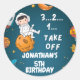 Astronaut Space planets blue birthday Classic Round Sticker
