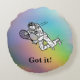 Astronaut Spaceman Tennis Player With Text Round Cushion