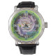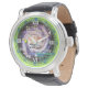 Astronomy Cosmologer SCI-4 Space Watch. Amaze your friends with this cool geek's item Milky Way Galaxy watch with a science art impression of the Milky Way Galactic System and the position of the Sun and the Solar System within the Galactic Disc is marked by a yellow sphere/ dot on the watch, it tells you where we are right now within the Galaxy! (Approximate relative location, distances not to scale). It takes our Sun and our Solar System an immense 225 to 250 million terrestrial years to complete one full cycle in the galaxy (named a galactic year), so it is directly printed on the wristwatch's dial and does NOT move (it doesn't need to, since a tiny 0.05 inch movement on the watch would be more than 500,000 terrestrial years (imagine this!!)). The space themed watch has following text: "Milky Way Gal.XY", Sun, "Sagittarius", telling you the Sagittarius Arm, "250 million year cycle" and "Norma Arm" telling you the Norma Arm and of course the yellow sphere, our Sun and Solar System, telling our relative place within the Galactic Disc. The time dial also shows the name "Astronomy Cosmologer SCI-4" and a special fully customisable text "Special Edition" (add your name to personalise here, a fantastic space gift idea!!). For a grander look most of the hours of this beautiful timework have Roman numerals (I, II, III, IV, VI, etc.), a second timeline and numerals (1, 2, 3, 4, etc.). This educational and majestic Milky Way Galactic miniature star chart product makes a unique astronomy gift for science geeks, future young astronomy and space scientists and astronauts and star gazers all other travelers through the cosmos (aren't we all!?).