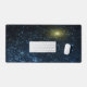 LOVE this desk mat! It's large! It fits across my desk. No need for a small mouse pad now! Color and print are excellent. Quality seems to be excellent too. Delivery was about 3 days sooner than expected. I think this is one of my favorite Zazzle products! Excellent. The color is vibrant and true to what I expected.