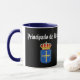 Bring a little bit of Spain to your favourite beverage with this Asturias coffee mug. This is a great gift for a friend, a family member, of for yourself. The mug is very clean looking with a black background (customisable). On one side is the coat of arms of Asturias under the name Asturias. On the other side is the Asturias flag over the Spanish flag. These are under the word: España. For more items like this, visit: www.zazzle.com/azorean*. Browse the Europe category.