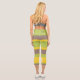 Three-color design with asymmetric stripes. Horizontal lines in three colors for your sporty Capri leggings. Add your name on the high waist athleisure. This variant is the bright color scheme in brown, yellow and green.
