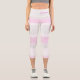 Three-color design with asymmetric stripes. Horizontal lines in three soft colors for your sporty Capri leggings. Add your name on the high waist athleisure. This variant is the pastel color scheme in grey, pink and white.