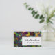This simple design gets a little shakeup with the off-centre white, bordered block on which your name and title appear. Sometimes it's nice to just shake up the expectations that come with perfect symmetry and if you agree with that sentence, this could be the card for you. This right-aligned block is laid over a background filled with a piece of bold, rich digital abstract art.
